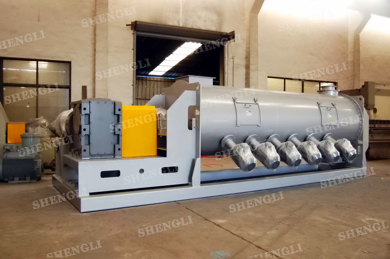 描述:犁刀連續(xù)式攪拌機(jī)臥式安裝,進(jìn)行連續(xù)式生產(chǎn)模式,內(nèi)部配置犁刀配合多組高速飛刀能夠有效打散、混合物料。設(shè)備主軸采用填料密封,配置基礎(chǔ)安裝框架,桶側(cè)開(kāi)設(shè)檢修門(mén)。