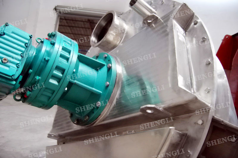 描述:雙螺旋錐形混合機(jī)內(nèi)部安裝非對(duì)稱傾斜螺旋,雙螺旋自身旋轉(zhuǎn),提升物料,并有公轉(zhuǎn)減速箱驅(qū)動(dòng),沿錐體中心軸公轉(zhuǎn),360度攪拌物料,擁有非破壞性攪拌以及快速且無(wú)殘留卸料的特點(diǎn)。該設(shè)備配置內(nèi)加熱夾套,內(nèi)外表面做拉絲處理,錐體中心軸加噴液裝置。