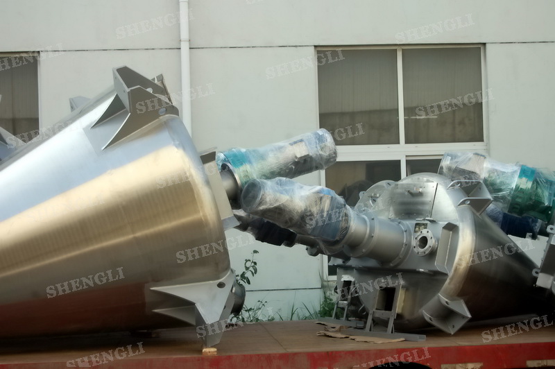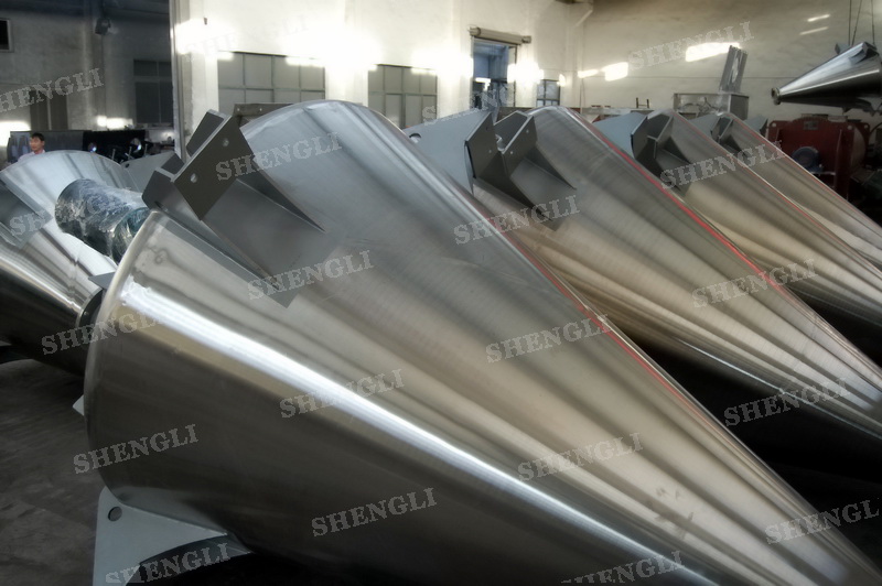 描述:錐形混合機(jī)內(nèi)部安裝非對稱傾斜螺旋,雙螺旋自身旋轉(zhuǎn),提升物料,并有公轉(zhuǎn)減速箱驅(qū)動,沿錐體中心軸公轉(zhuǎn),360度攪拌物料,擁有非破壞性攪拌以及快速且無殘留卸料的特點(diǎn)。該設(shè)備配置手動錯位閥,內(nèi)外表面做拉絲處理。