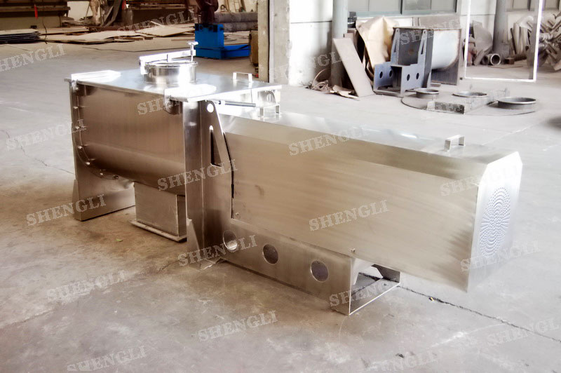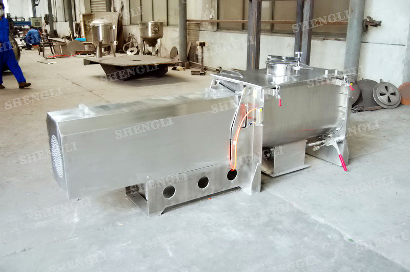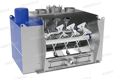 工作原理:槳葉式混合機(jī)采用U型筒體,內(nèi)設(shè)平行主軸,主軸上安裝若干傾角式槳葉刀,不僅能快速高效的攪拌物料,且不會(huì)破壞物料,不會(huì)卡料。