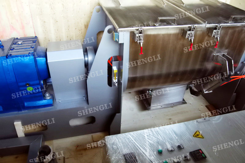 工作原理:槳葉式混合設(shè)備采用U型筒體,內(nèi)設(shè)平行主軸,主軸上安裝若干傾角式槳葉刀,不僅能快速高效的攪拌物料,且不會破壞物料,不會卡料。