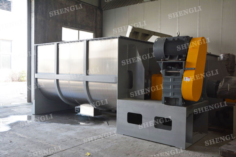工作原理:臥式攪拌機采用U型筒體,內(nèi)設(shè)平行主軸,主軸上安裝若干傾角式槳葉刀,不僅能快速高效的攪拌物料,且不會破壞物料,不會卡料。