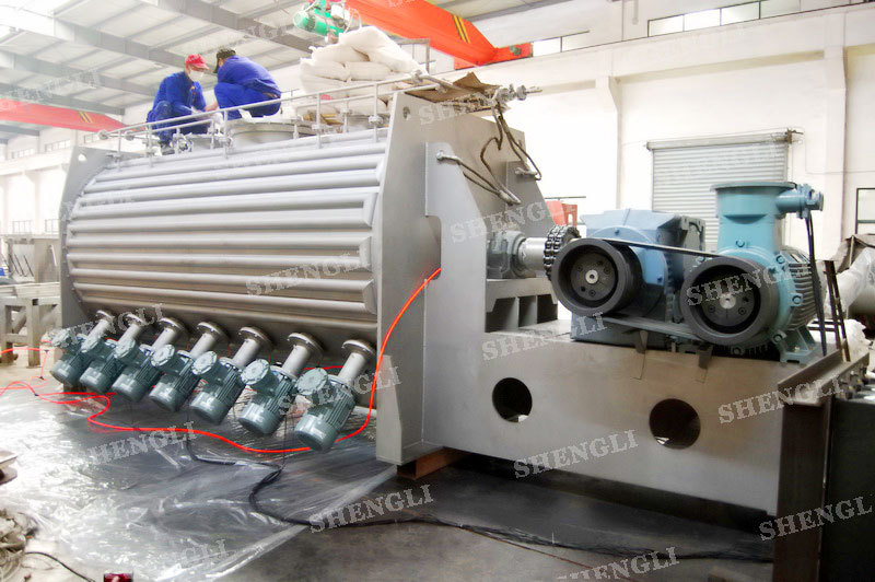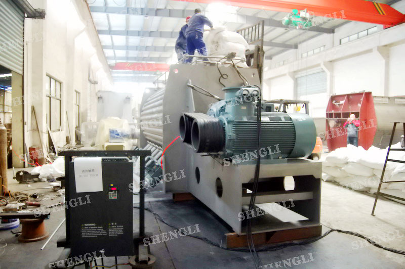 設備配置:配置K系列減速機,皮帶式安裝;搭載十四臺3000轉每分鐘的高速飛刀;筒體外設導熱介質盤管夾套;出料口采用雙氣動翻板閥;主軸與飛刀主軸采用氣密封;設備架設多組噴液系統(tǒng);筒體上設氣動在線取樣閥;設備內表面鏡面拋光、外表面噴砂亞光。