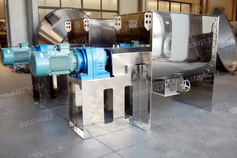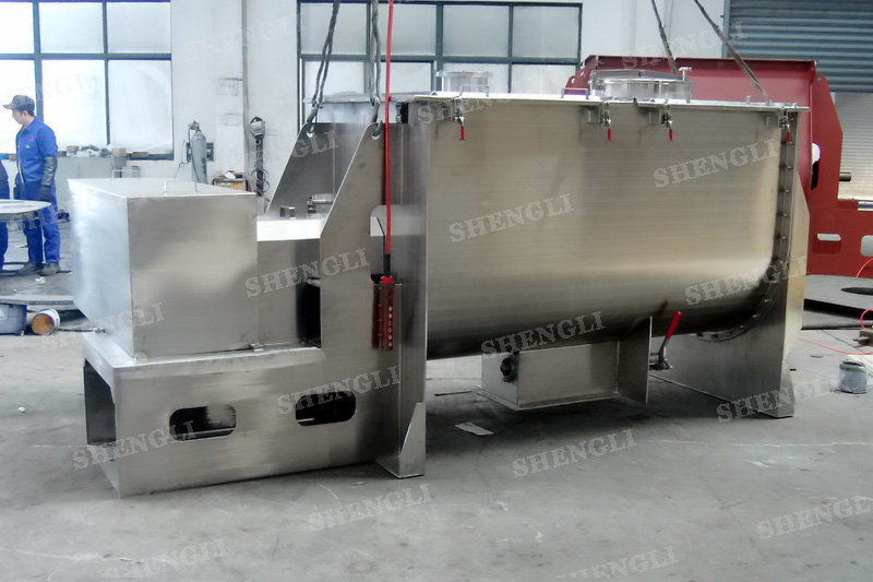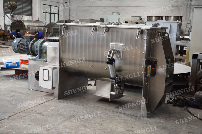 工作原理:螺帶混合機(jī)采用U型筒體,內(nèi)裝平行主軸,主軸上安裝正反雙向的盤條螺帶,不同維度螺帶分內(nèi)螺帶與外螺帶,物料在螺帶的驅(qū)使下反復(fù)參混,能夠快速高效的混合。
