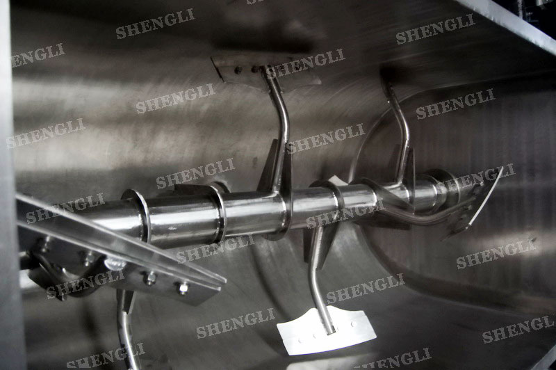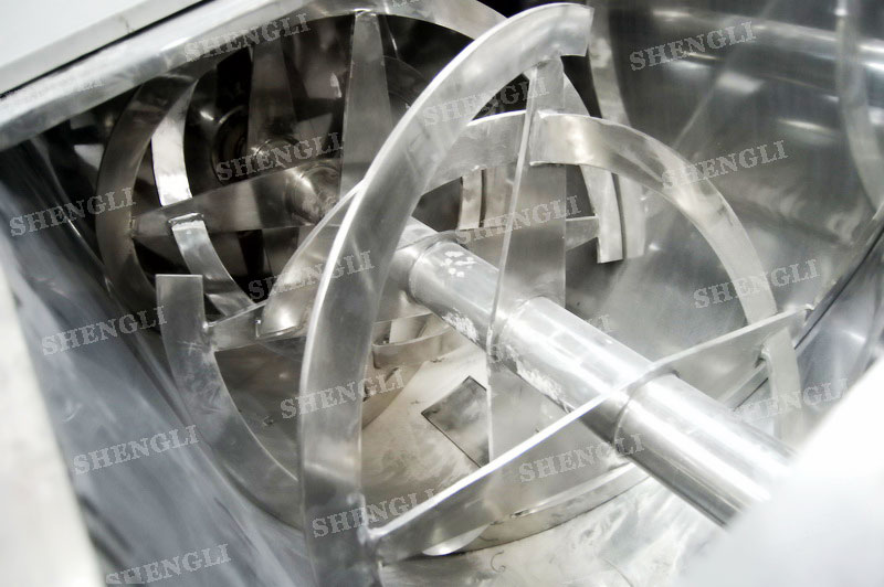 工作原理:螺帶混合機采用U型筒體,內(nèi)裝平行主軸,主軸上安裝正反雙向的盤條螺帶,不同維度螺帶分內(nèi)螺帶與外螺帶,物料在螺帶的驅(qū)使下反復(fù)參混,能夠快速高效的混合。