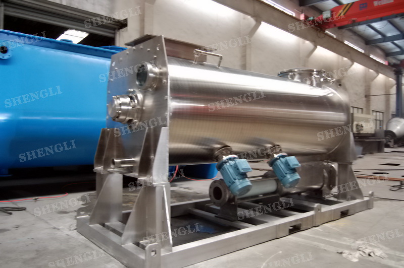 工作原理:螺帶攪拌設(shè)備采用U型筒體,內(nèi)裝平行主軸,主軸上安裝正反雙向的盤(pán)條螺帶,不同維度螺帶分內(nèi)螺帶與外螺帶,物料在螺帶的驅(qū)使下反復(fù)參混,能夠快速高效的混合。