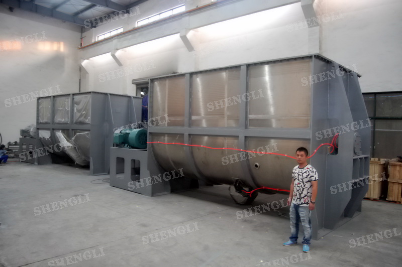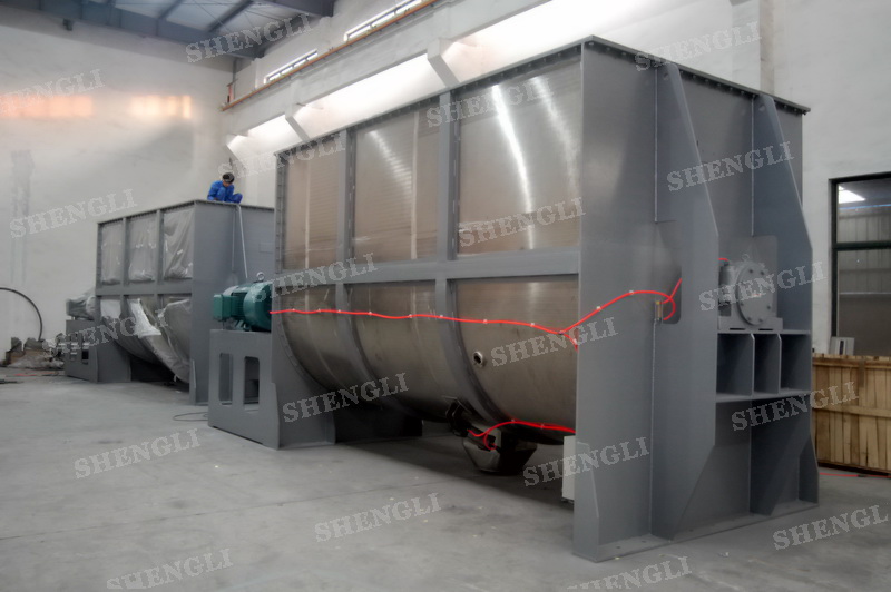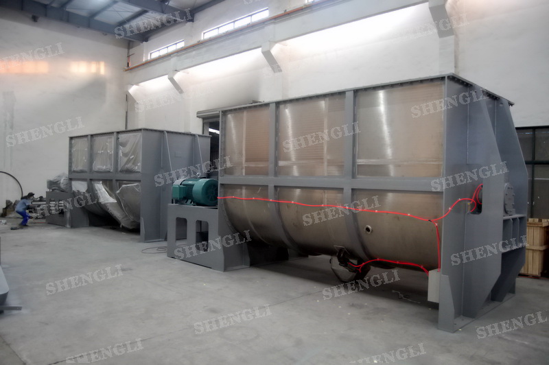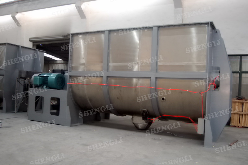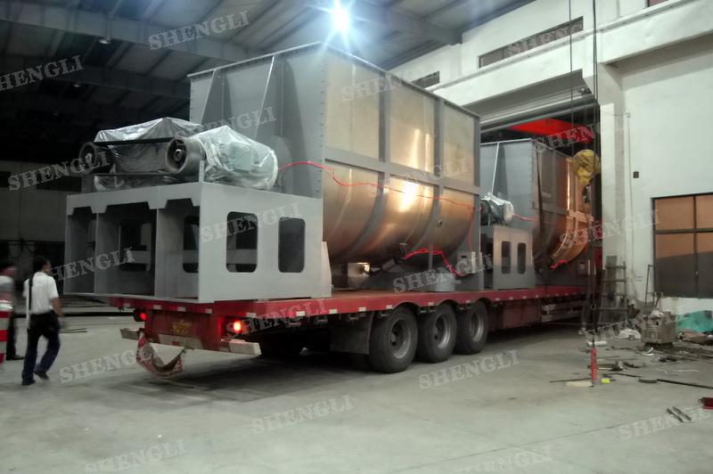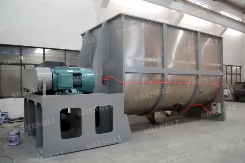 工作原理:螺帶混合設(shè)備采用U型筒體,內(nèi)裝平行主軸,主軸上安裝正反雙向的盤條螺帶,不同維度螺帶分內(nèi)螺帶與外螺帶,物料在螺帶的驅(qū)使下反復(fù)參混,能夠快速高效的混合。