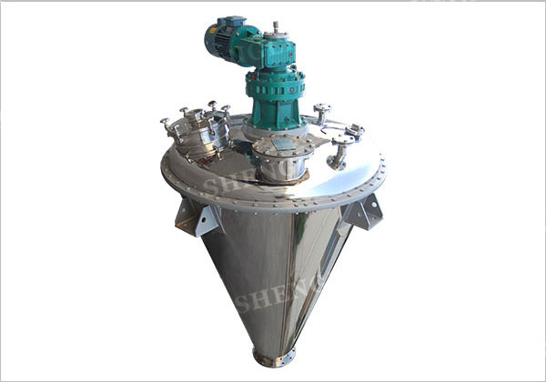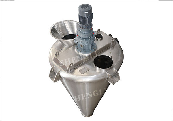混合機(jī)根據(jù)物料性質(zhì)、啟動(dòng)方式、以及工藝要求配置不同功率、不同能力的驅(qū)動(dòng)裝置。 雙螺旋錐形混合機(jī)裝載專用的雙輸出減速機(jī)組合箱,采用擺線針輪、齒輪、蝸輪蝸桿形式組合定制而成。